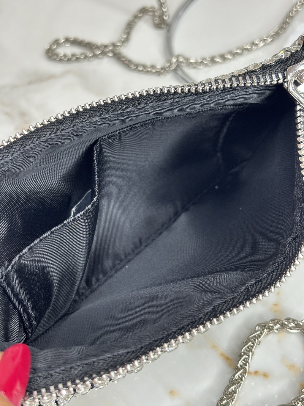 A Bolsa Mia é o acessório perfeito para quem adora um toque de glamour. Toda em pedraria de brilho, ela traz elegância e um toque de sofisticação ao seu look. Com duas alças de corrente, uma pequena e outra maior, você pode usá-las separadamente ou juntas, conforme sua preferência. Forrada por dentro e com um bolso adicional, essa bolsa também conta com zíper, garantindo segurança e organização para seus pertences.